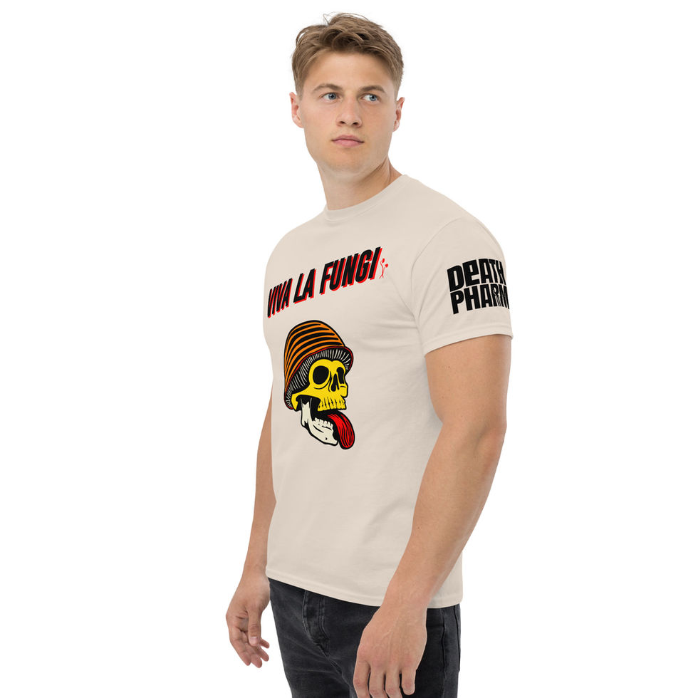 Front: “Viva la Fungi” stamped across the chest bold and defiant. Your fearless Myco Guerrilla mocks all unworthy onlookers and cries out to the courageous, Join the Rebellion.